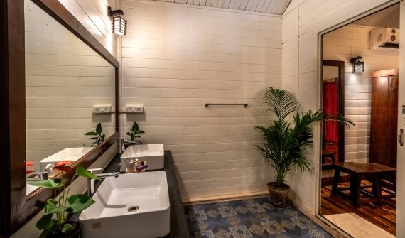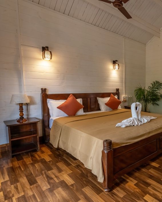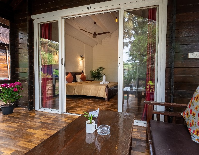 As you step into the Garden AC Cottage room at The Exotica Agonda, you are greeted by a sense of tranquility. The room is thoughtfully designed with a fusion of contemporary elegance and rustic charm. The interior decor exudes a warm and welcoming ambiance, with a color palette inspired by the surrounding natural beauty. The use of earthy tones and wooden furnishings creates a soothing atmosphere, making you feel instantly at ease.
